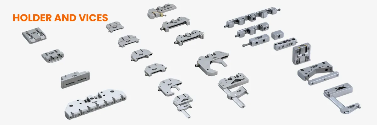 They position the workpiece accurately against the reference system while maintaining rigidity during cutting.